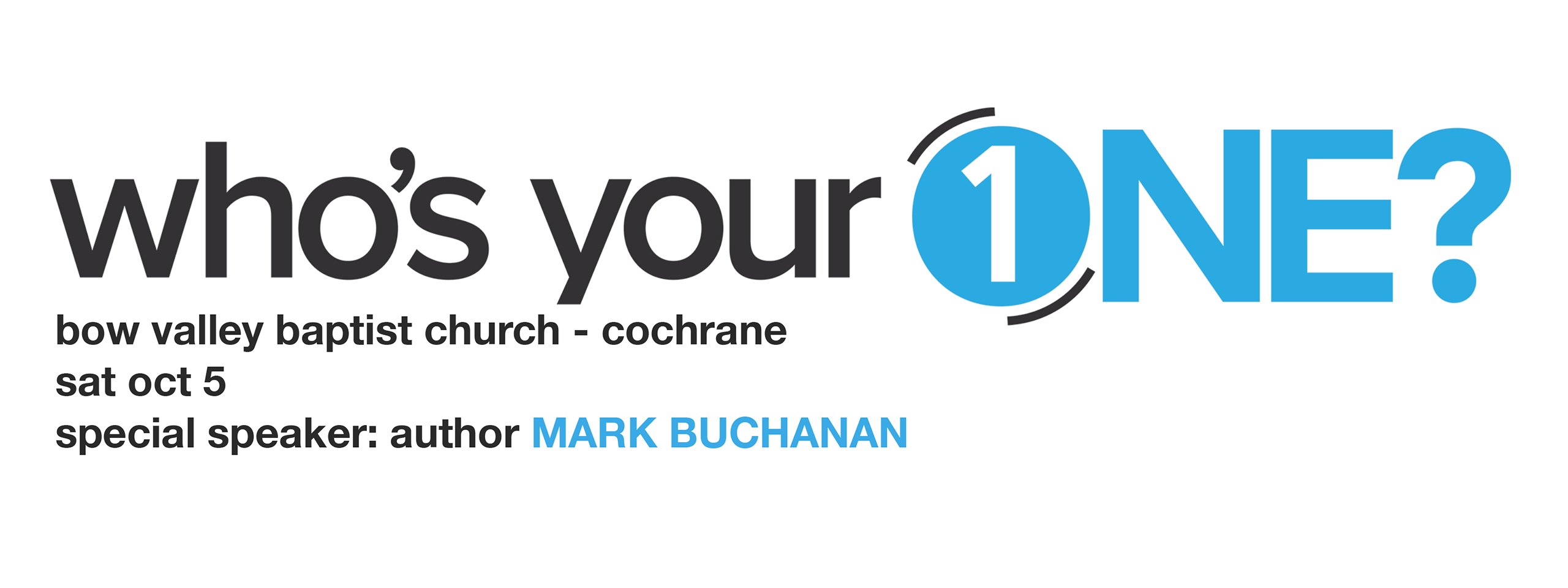 Come celebrate what God has been doing in Southern Alberta CNBC churches on October 5 from 9am – 4pm at Bow Valley Baptist Church, Cochrane, AB.  Equipping sessions, emphasizing our theme “Who’s your One?”, will be available for youth and adults to prepare each in areas of Evangelism, Church Planting, Leadership Development and more. In the afternoon we will gather for a time of worship and celebration including a challenge, by Mark Buchanan, our guest speaker, around the theme of “Who’s your One?”.